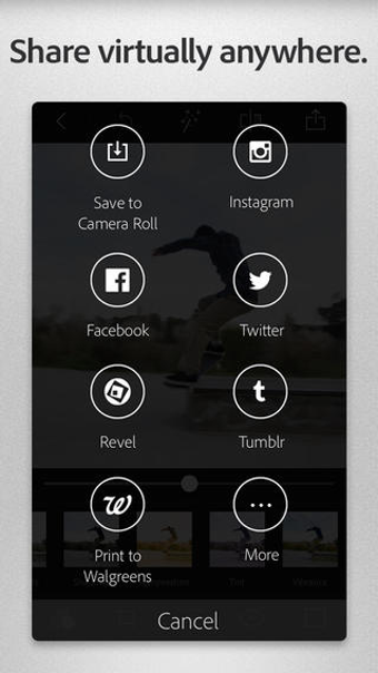 Adobe Photoshop Expressで編集した画像はFacebookやTwitter、Tumblr、Eメールに投稿、送信できます。友人との思い出の写真や旅先で撮った写真などにひと手間加えてシェアしたりアルバム保存したりしておくと写真を撮るのも楽しくなります。